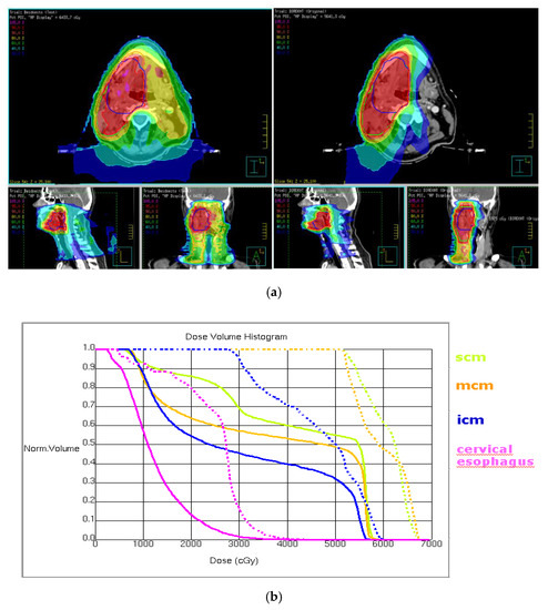 - Levendag, P.C.; Teguh, D.N.; Voet, P.; van der Est, H.; Noever, I.; de Kruijf, W.J.; Kolkman-Deurloo, I.K.; Prevost, J.B.; Poll, J.; Schmitz, P.I.; et al. Dysphagia disorders in patients with cancer of the oropharynx are significantly affected by the radiation therapy dose to the superior and middle constrictor muscle: A dose-effect relationship. Radiother. Oncol. J. Eur. Soc. Ther. Radiol. Oncol. 2007, 85, 64–73. [Google Scholar] [CrossRef]
