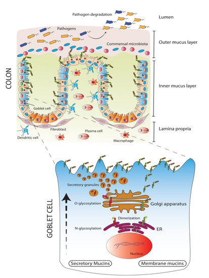 Mucins; MUC2; MUC5AC; MUC4; glycans; inflammatory bowel disease; colon and colorectal cancer 1. Introduction
