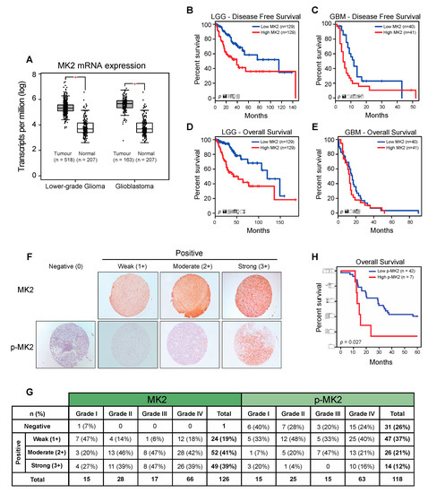 2.1. MK2 Activity Correlates with Poor Glioma Prognosis