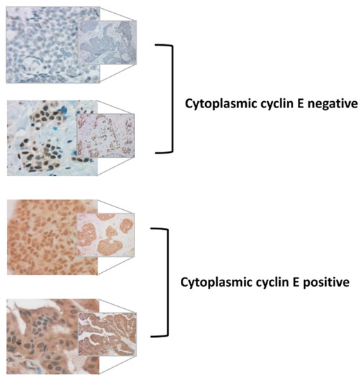 Representative IHC staining for c-cyclin E positive and negative cases is presented in Figure 2.