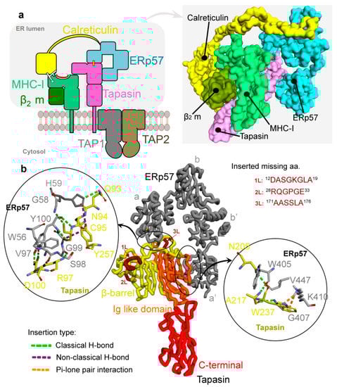 - Peaper, D.R.; Wearsch, P.A.; Cresswell, P. Tapasin and ERp57 form a stable disulfide-linked dimer within the MHC class I peptide-loading complex. EMBO J. 2005, 24, 3613–3623. [Google Scholar] [CrossRef]