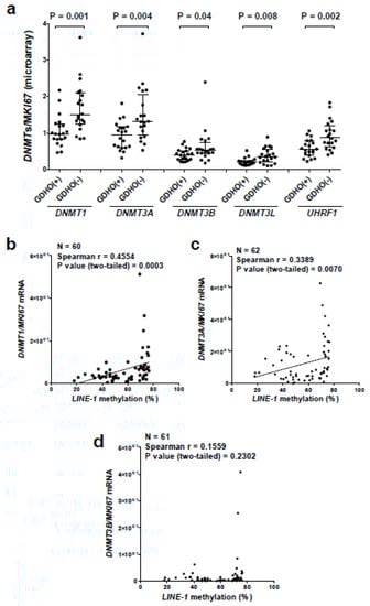 - Liu, J.; Cui, X.; Jiang, J.; Cao, D.; He, Y.; Wang, H. Uncoordinated expression of DNA methylation-related enzymes in human cancer. Epigenetics Chromatin 2017, 10, 61. [Google Scholar] [CrossRef]