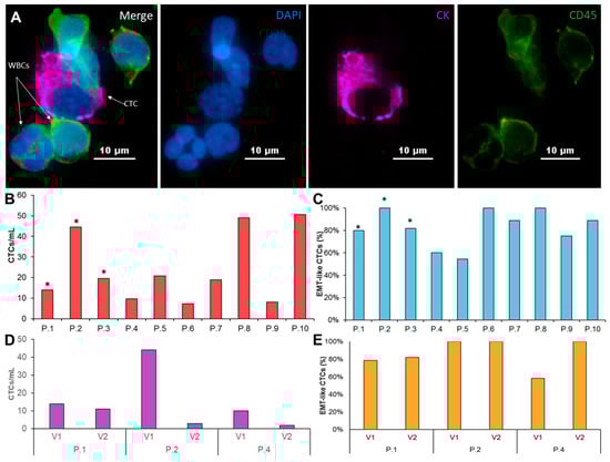 - Mikolajczyk, S.D.; Millar, L.S.; Tsinberg, P.; Coutts, S.M.; Zomorrodi, M.; Pham, T.; Pircher, T.J. Detection of EpCAM-Negative and Cytokeratin-Negative Circulating Tumor Cells in Peripheral Blood. J. Oncol. 2011, 2011, 252361. [Google Scholar] [CrossRef]