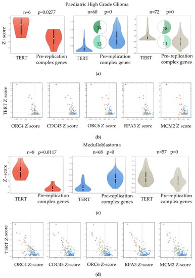2.1. The Genes Involved in the Activation of the Pre-Replicative Complex May Play a Role in the Switch between ALT and Telomerase-Dependent TMM in Brain Tumors