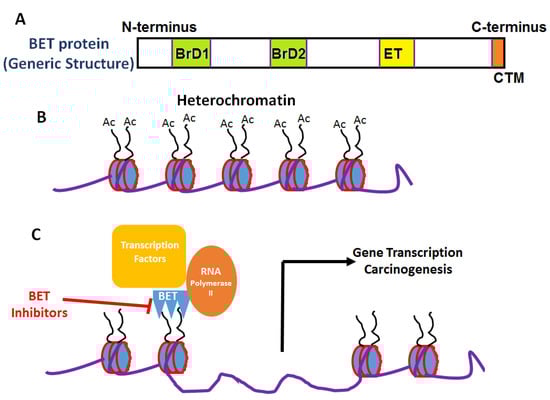 - Taniguchi, Y. The Bromodomain and Extra-Terminal Domain (BET) Family: Functional Anatomy of BET Paralogous Proteins. Int. J. Mol. Sci. 2016, 17, 1849. [Google Scholar] [CrossRef] [PubMed]