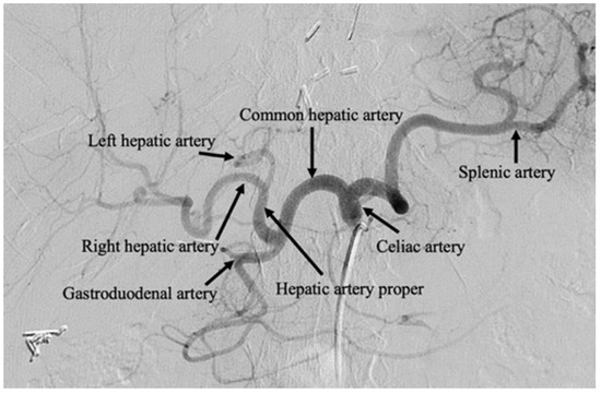 Successive generations of therapies have evolved from this principle by also delivering chemotherapeutic, known as transarterial chemoembolization (TACE), and radiotherapeutic, known as selective internal radiation therapy (SIRT), agents. From a clinical perspective, transcatheter arterial embolization therapies can be performed as an outpatient procedure, under moderate conscious sedation or general anesthesia, reserving overnight admission in cases of extensive comorbidity, complication, or for management of substantial periprocedural symptomatology [7,8]. Embolization may be repeated multiple times for local tumor control. Figure 1 contains a celiac artery angiogram delineating the relevant visceral artery anatomy for hepatic embolotherapy.