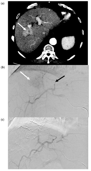 - Gaba, R.C.; Lokken, R.P.; Hickey, R.M.; Lipnik, A.J.; Lewandowski, R.; Salem, R.; Brown, D.B.; Walker, T.G.; Silberzweig, J.E.; Baerlocher, M.O.; et al. Quality Improvement Guidelines for Transarterial Chemoembolization and Embolization of Hepatic Malignancy. J. Vasc. Interv. Radiol. 2017, 28, 1210–1223. [Google Scholar] [CrossRef] [PubMed]