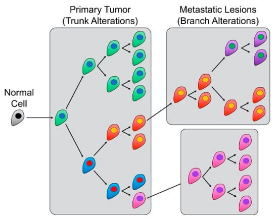 - Naxerova, K.; Jain, R.K. Using tumor phylogenetics to identify the roots of metastasis in humans. Nat. Rev. Clin. Oncol. 2015, 12, 258–272. [Google Scholar] [CrossRef]
