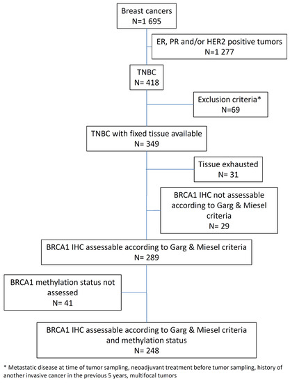 Only cases with available BRCA1 IHC analysis and BRCA1 promoter methylation status were selected for this study (n = 248; Figure 1).