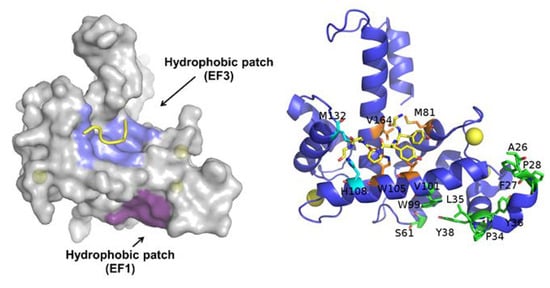 - Kawasaki, H.; Mizutome, H.; Kretsinger, R.H. Interaction sites of PEF proteins for recognition of their targets. Int. J. Biol. Macromol 2019, 133, 1035–1041. [Google Scholar] [CrossRef]