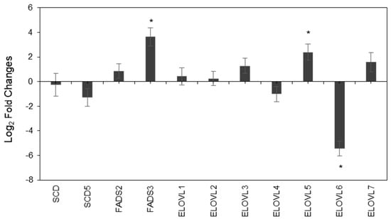 It must be also considered that fatty acids from membrane phospholipids may not only reflect the expression level of enzymes involved in their biosynthesis, but also the activity of enzymes involved in fatty acid remodeling of membrane phospholipids, such as lysophospholipid acyltransferases [39].