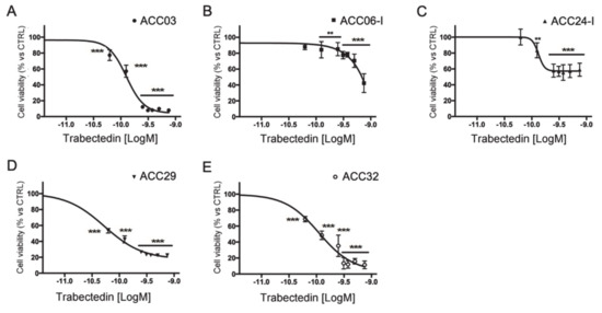 2.2. Trabectedin-Induced Cytotoxicity in ACC Primary Cell Cultures