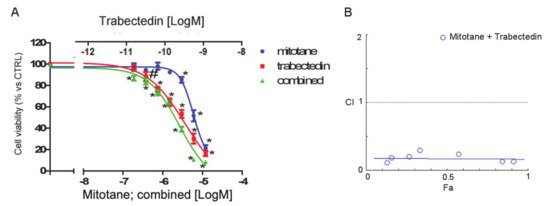 2.3. Trabectedin Enhanced Cytotoxicity Induced by Mitotane in NCI-H295R Cell Line