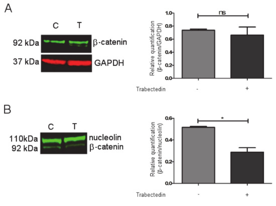 2.5. Trabectedin Affects the Expression of β-catenin Target Genes