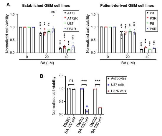 2.2. BA Sensitizes Resistant GBM Cells to TMZ