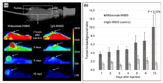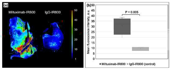 - Bernhard, W.; El-Sayed, A.; Barreto, K.; Gonzalez, C.; Hill, W.; Parada, A.C.; Fonge, H.; Geyer, C.R. Near infrared fluorescence imaging of EGFR expression in vivo using IRDye800CW-nimotuzumab. Oncotarget 2018, 9, 6213. [Google Scholar] [CrossRef] [PubMed]