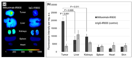 - Zinn, K.R.; Korb, M.; Samuel, S.; Warram, J.M.; Dion, D.; Killingsworth, C.; Fan, J.; Schoeb, T.; Strong, T.V.; Rosenthal, E.L. IND-directed safety and biodistribution study of intravenously injected cetuximab-IRDye800 in Cynomolgus Macaques. Mol. Imaging Biol. 2014, 17, 49–57. [Google Scholar] [CrossRef] [PubMed]