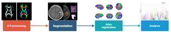 - Hoefnagels, F.W.; De Witt Hamer, P.; Sanz-Arigita, E.; Idema, S.; Kuijer, J.P.; Pouwels, P.J.; Barkhof, F.; Vandertop, W.P. Differentiation of edema and glioma infiltration: Proposal of a DTI-based probability map. J. Neurooncol. 2014, 120, 187–198. [Google Scholar] [CrossRef] [PubMed]