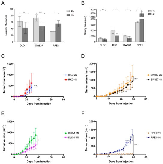 2.1. Growth Retardation of Near-Tetraploid Cells in Untreated Conditions and Diverse Tumorigenic Potential