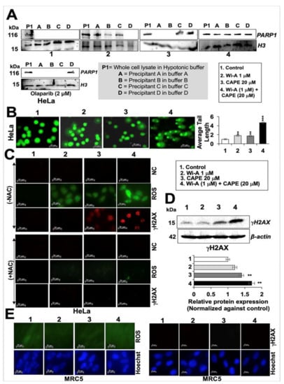 2.3. Wi-A and CAPE Triggered PARP1 Cleavage and Apoptosis Signaling