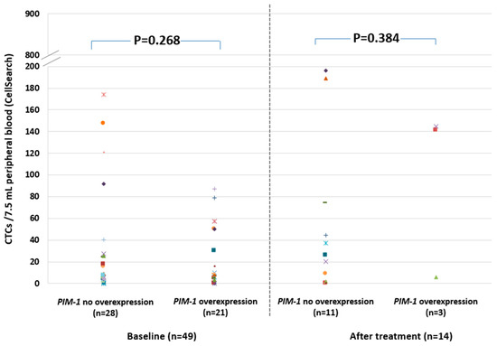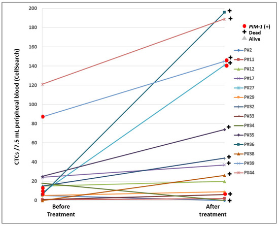 2.3. PIM-1 Overexpression in the EpCAM(+) CTC Fraction before and after Treatment