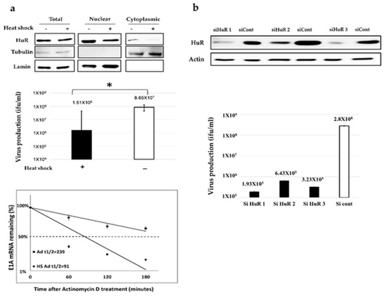 - Jehung, J.P.; Kitamura, T.; Matsuda, A.Y.; Kuroshima, T.; Towfik, A.; Yasuda, M.; Sano, H.; Kitagawa, Y.; Minowa, K.; Shindho, M.; et al. Adenovirus infection induces HuR relocalization to facilitate virus replication. BBRC 2018, 495, 1795–1800. [Google Scholar] [CrossRef] [PubMed]