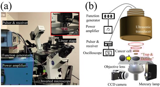 - Hwang, J.Y.; Kim, J.; Park, J.M.; Lee, C.; Jung, H.; Lee, J.; Shung, K.K. Cell Deformation by Single-beam Acoustic Trapping: A Promising Tool for Measurements of Cell Mechanics. Sci. Rep. 2016, 6. [Google Scholar] [CrossRef]