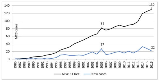Chicago/Turabian StyleSahi, Helka, Jenny Their, Mika Gissler, and Virve Koljonen. 2020. "Merkel Cell Carcinoma Treatment in Finland in 1986–2016—A Real-World Data Study" Cancers 12, no. 5: 1224. https://doi.org/10.3390/cancers12051224
