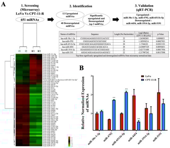 Adjuvant chemotherapy consisting of 5-FU, CPT-11, and oxaliplatin currently remains the first-line chemotherapy treatment for patients with high-grade CRC. However, the chemoresistance leading to treatment failure and relapse is still a critical problem for identifying the subpopulation of patients who are most likely to respond to targeted therapy. If the mechanism that mediates variations in patient response to chemotherapy could be predicted, then effective treatment strategies for non-responders could be formulated. Evidence shows that the modulation of microRNA can alter the response to chemotherapy and reverse microRNA-mediated responses, potentially enhancing the efficacy of antitumor therapy [6,20,21,22].