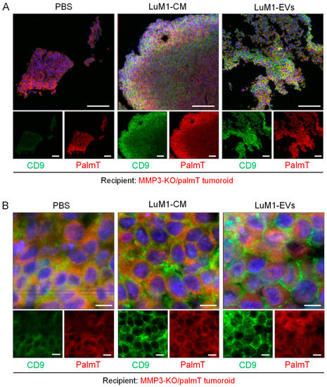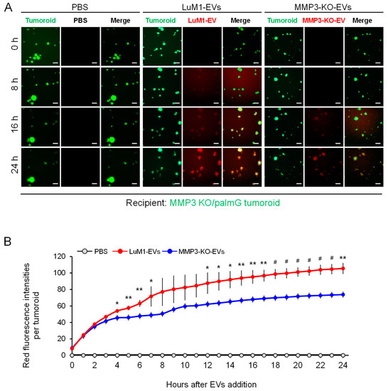 2.7. The Knockout of the Mmp3 Gene Significantly Decreased the Transmissive Potential of Tumoroid-Derived EVs