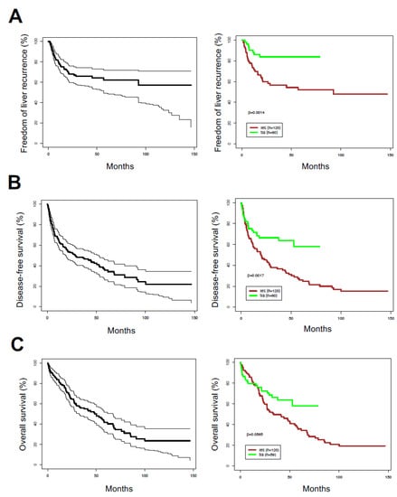- Citterio, D.; Facciorusso, A.; Sposito, C.; Rota, R.; Bhoori, S.; Mazzaferro, V. Hierarchic Interaction of Factors Associated With Liver Decompensation After Resection for Hepatocellular Carcinoma. JAMA Surg. 2016, 151, 846–853. [Google Scholar] [CrossRef]