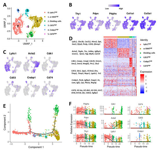 4.4. Single Cell Sequencing and Analysis of Stromal Cell-Enriched Fraction