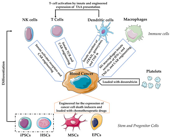 cell-based therapy; blood cancer; CAR-T cells; NK cells; dendritic cells; platelets; macrophages; iPSC; stem cells 1. Introduction
