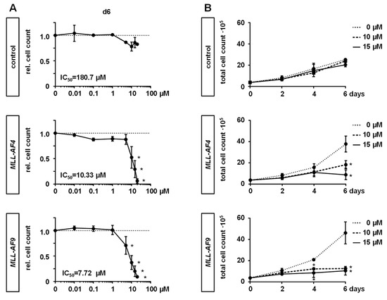- Gaussmann, A.; Wenger, T.; Eberle, I.; Bursen, A.; Bracharz, S.; Herr, I.; Dingermann, T.; Marschalek, R. Combined effects of the two reciprocal t(4;11) fusion proteins MLL.AF4 and AF4.MLL confer resistance to apoptosis, cell cycling capacity and growth transformation. Oncogene 2007, 26, 3352–3363. [Google Scholar] [CrossRef]