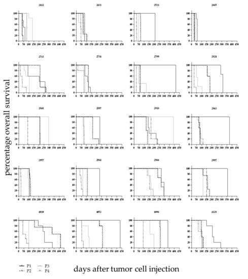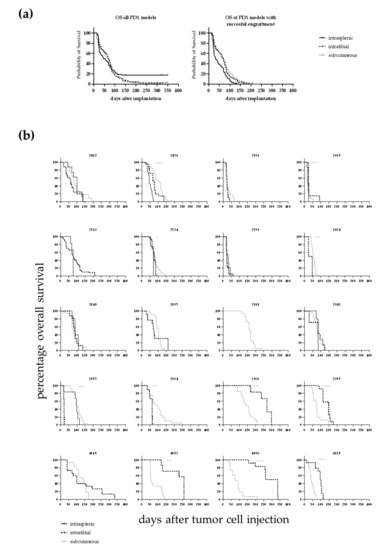 2.3. The Implantation Site Has an Impact on the Overall Survival Time in a Number of PDX Models but not the Complete Panel