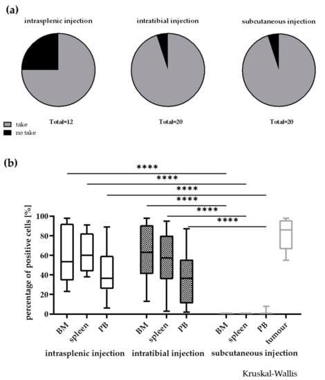 2.4. The Implantation Site Has No Significant Impact on Take Rate but Does Influence the Infiltration Capacity in Haemopoietic Organs