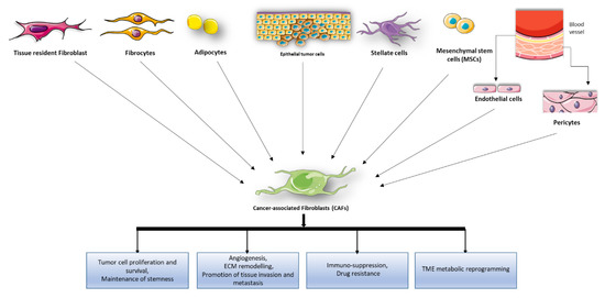 - Kalluri, R. The biology and function of fibroblasts in cancer. Nat. Rev. Cancer 2016, 16, 582–598. [Google Scholar] [CrossRef]