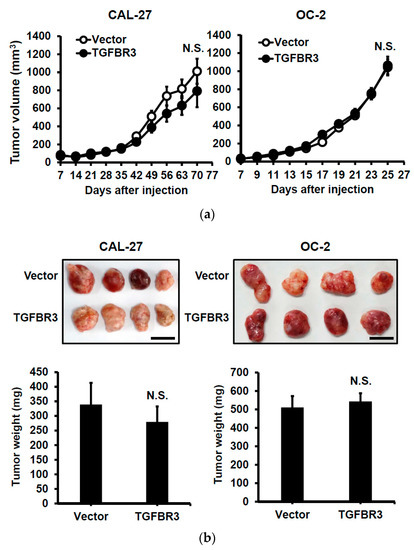 2.3. Ectopic TGFBR3 Expression Decreased Lymph Node Metastasis without Affecting Xenograft Tumor Growth