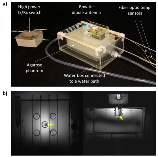- Eigentler, T.W.; Winter, L.; Han, H.; Oberacker, E.; Kuehne, A.; Waiczies, H.; Schmitter, S.; Boehmert, L.; Prinz, C.; Trefna, H.D. Wideband Self-Grounded Bow-Tie Antenna for Thermal MR. NMR Biomed. 2020, 33, e4274. [Google Scholar] [CrossRef] [PubMed]