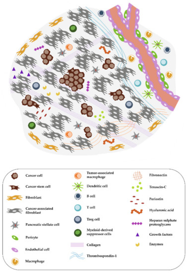 - Thomas, D.; Radhakrishnan, P. Tumor-stromal crosstalk in pancreatic cancer and tissue fibrosis. Mol. Cancer 2019, 18, 14. [Google Scholar] [CrossRef]