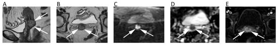 - Turkbey, B.; Rosenkrantz, A.B.; Haider, M.A.; Padhani, A.R.; Villeirs, G.; Macura, K.J.; Tempany, C.M.; Choyke, P.L.; Cornud, F.; Margolis, D.J.; et al. Prostate Imaging Reporting and Data System Version 2.1: 2019 Update of Prostate Imaging Reporting and Data System Version 2. Eur. Urol. 2019, 76, 340–351. [Google Scholar] [CrossRef]