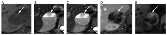 - Parikh, T.; Drew, S.J.; Lee, V.S.; Wong, S.; Hecht, E.M.; Babb, J.S.; Taouli, B. Focal Liver Lesion Detection and Characterization with Diffusion-weighted MR Imaging: Comparison with Standard Breath-hold T2-weighted Imaging. Radiology 2008, 246, 812–822. [Google Scholar] [CrossRef]