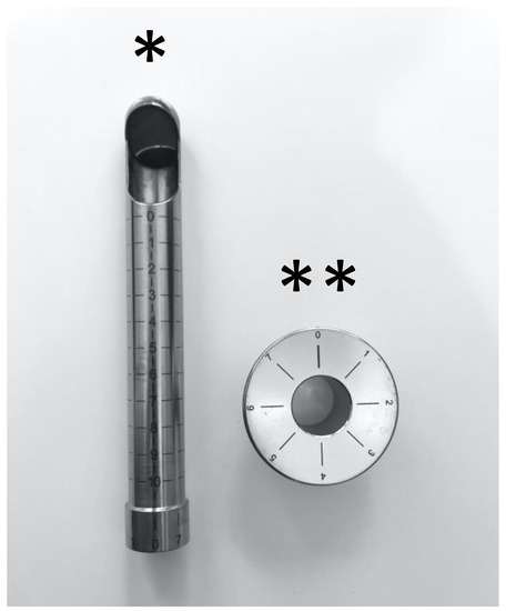 The figure represents the vaginal device of the laser. * Vaginal probe, ** graduated guide.