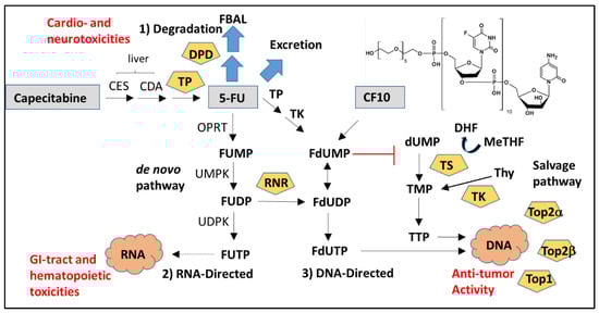 - Noordhuis, P.; Holwerda, U.; Van der Wilt, C.L.; Van Groeningen, C.J.; Smid, K.; Meijer, S.; Pinedo, H.M.; Peters, G.J. 5-Fluorouracil incorporation into RNA and DNA in relation to thymidylate synthase inhibition of human colorectal cancers. Ann. Oncol. 2004, 15, 1025–1032. [Google Scholar] [CrossRef]