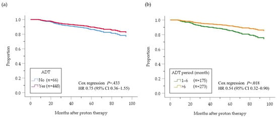 Murakami, M.; Ishikawa, H.; Shimizu, S.; Iwata, H.; Okimoto, T.; Takagi, M.; Murayama, S.; Akimoto, T.; Wada, H.; Arimura, T.; et al. Optimal Androgen Deprivation Therapy Combined with Proton Beam Therapy for Prostate Cancer: Results from a Multi-Institutional Study of the Japanese Radiation Oncology Study Group. Cancers 2020, 12, 1690. https://doi.org/10.3390/cancers12061690