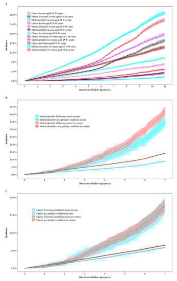 2.2. Incidence of Cancer, Mental Disorders, and Multimorbidity