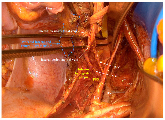 - Fujii, S.; Sekiyama, K. Precise Neurovascular Anatomy for Radical Hysterectomy; Springer Nature, Singapore Pte Ltd.: Singapore, 2020; p. 56. ISBN 978-981-13-8097-6. [Google Scholar]