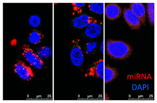 - Valadi, H.; Ekström, K.; Bossios, A.; Sjöstrand, M.; Lee, J.J.; Lötvall, J.O. Exosome-mediated transfer of mRNAs and microRNAs is a novel mechanism of genetic exchange between cells. Nat. Cell Biol. 2007, 9, 654–659. [Google Scholar] [CrossRef]