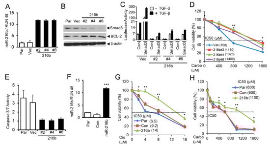2.6. MiR-216b Increases BCL-2 Expression and Promotes Resistance of Lung Cancer Cells to Anti-cancer Drugs by Downregulating Smad3 Expression