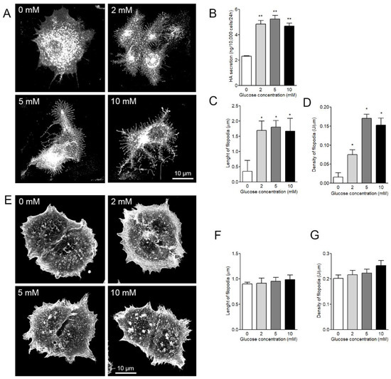 3.4. Both Length and Density of HAS3-Induced Filopodia are Dependent on Glucose Levels